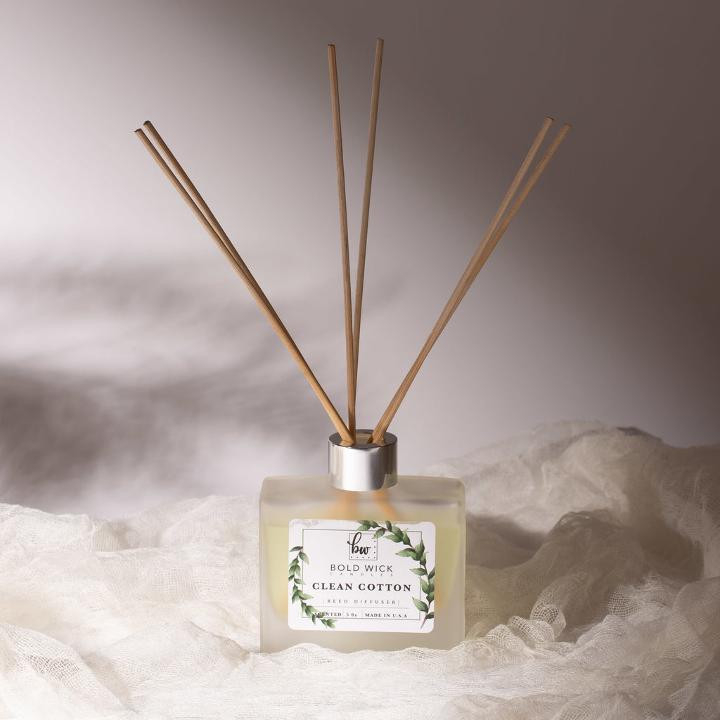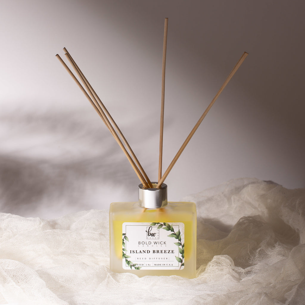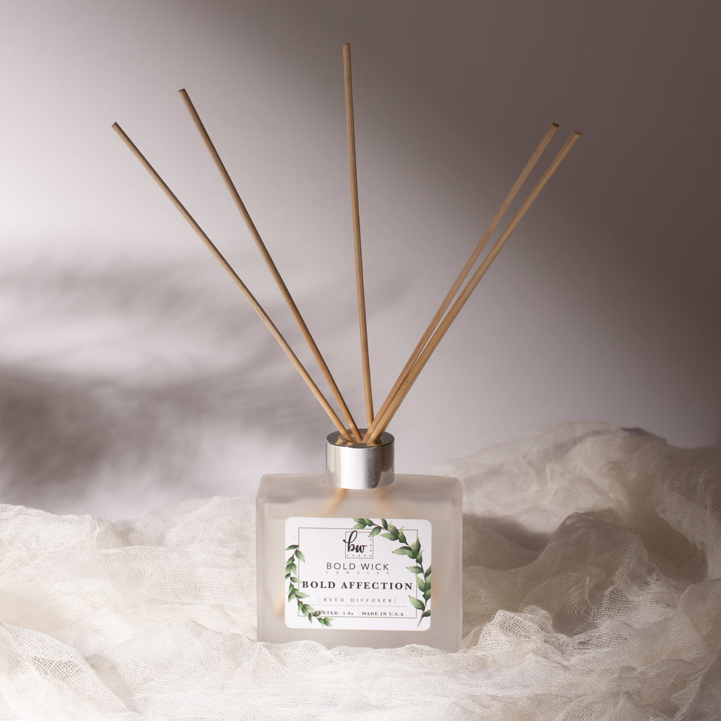 Our Reed Diffusers provide the finest fragrance and welcoming scents into your home. They are designed to add a finishing touch to entryways, small bedrooms, bathrooms, and offices. The frosted glass makes the bottle a beautiful accent piece, while the natural rattan reeds diffuse the continuous fragrance. Diffusers come filled with 3.6 ounces of fragrance oil. Pair with our hand-crafted natural soy wax candles to create an even more intense ambiance.